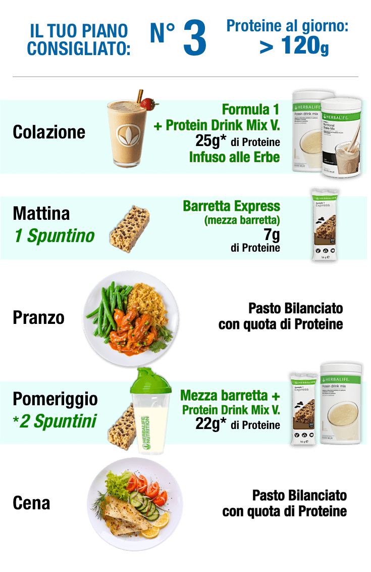 usa i prodotti a COLAZIONE e come SPUNTINI (a 1/2 mattino e a 1/2 pomeriggio) - Così facendo, eviterai di mangiare a colazione prodotti ricchi di zuccheri ma poveri di proteine e, durante la giornata, snack poco sani, calorici e poveri di nutrienti. - Usando i prodotti Herbalife a COLAZIONE e come SPUNTINI, fornisci al tuo corpo tanti nutrienti con pochissime calorie. Non solo: ottieni una quota di proteine sane e ciò aiuta a sostenere il metabolismo, stimolando il corpo a mantenere un eccellente livello di vitalità. - Inoltre, l’apporto di nutrienti dei prodotti ti permette di non arrivare sfinito al pasto successivo, aiutandoti così a mantenere abitudini alimentari sane, in ogni circostanza!