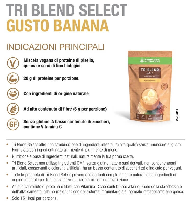 Inoltre, a differenza di altri frullati a base vegetale, Tri Blend Select offre una nutrizione bilanciata.